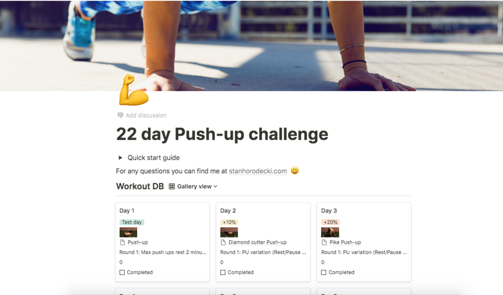 22 day Push-up challenge Notion template